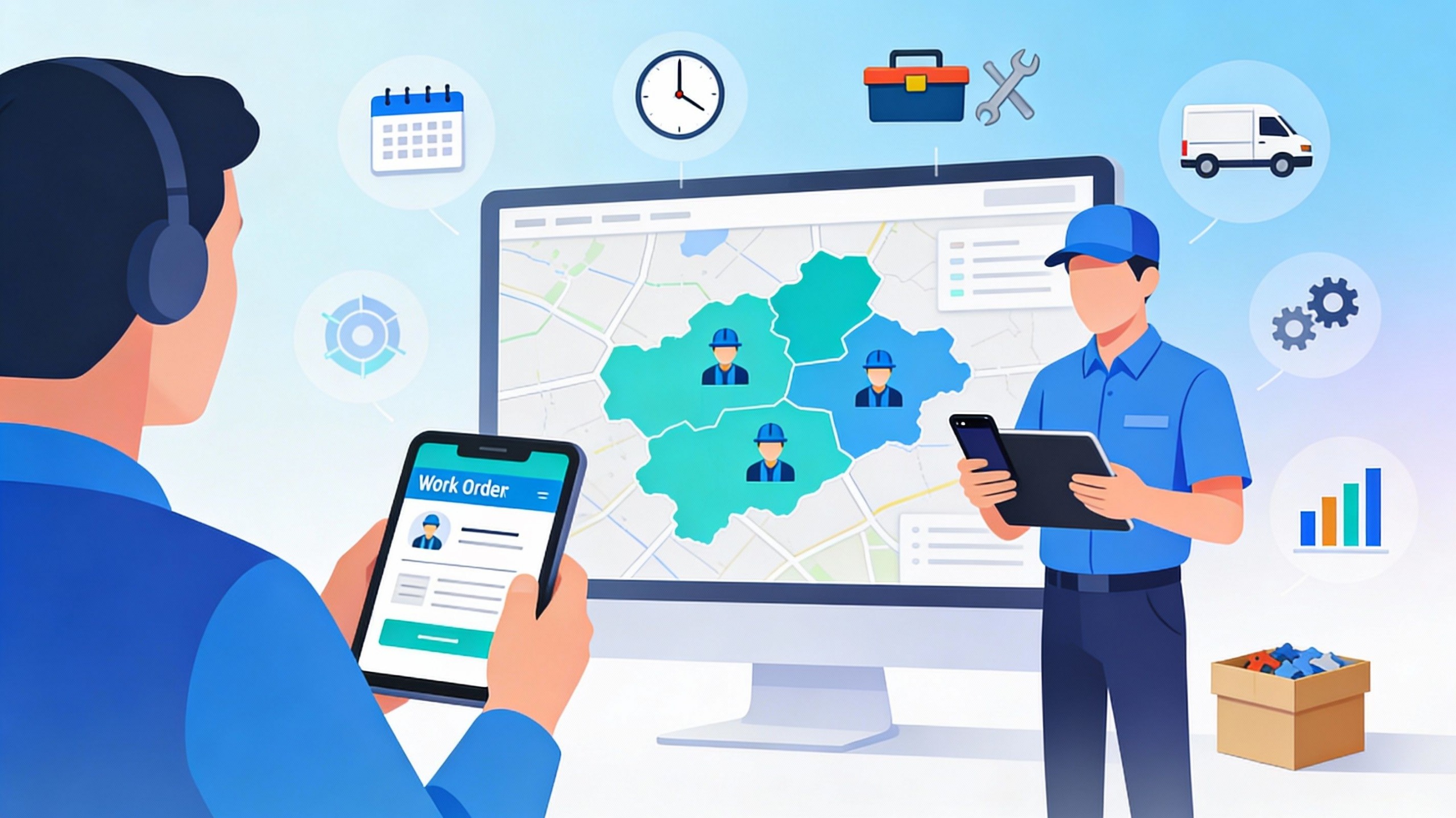 We help you connect back-office teams, dispatchers, and mobile technicians for efficient planning, scheduling, and onsite execution.